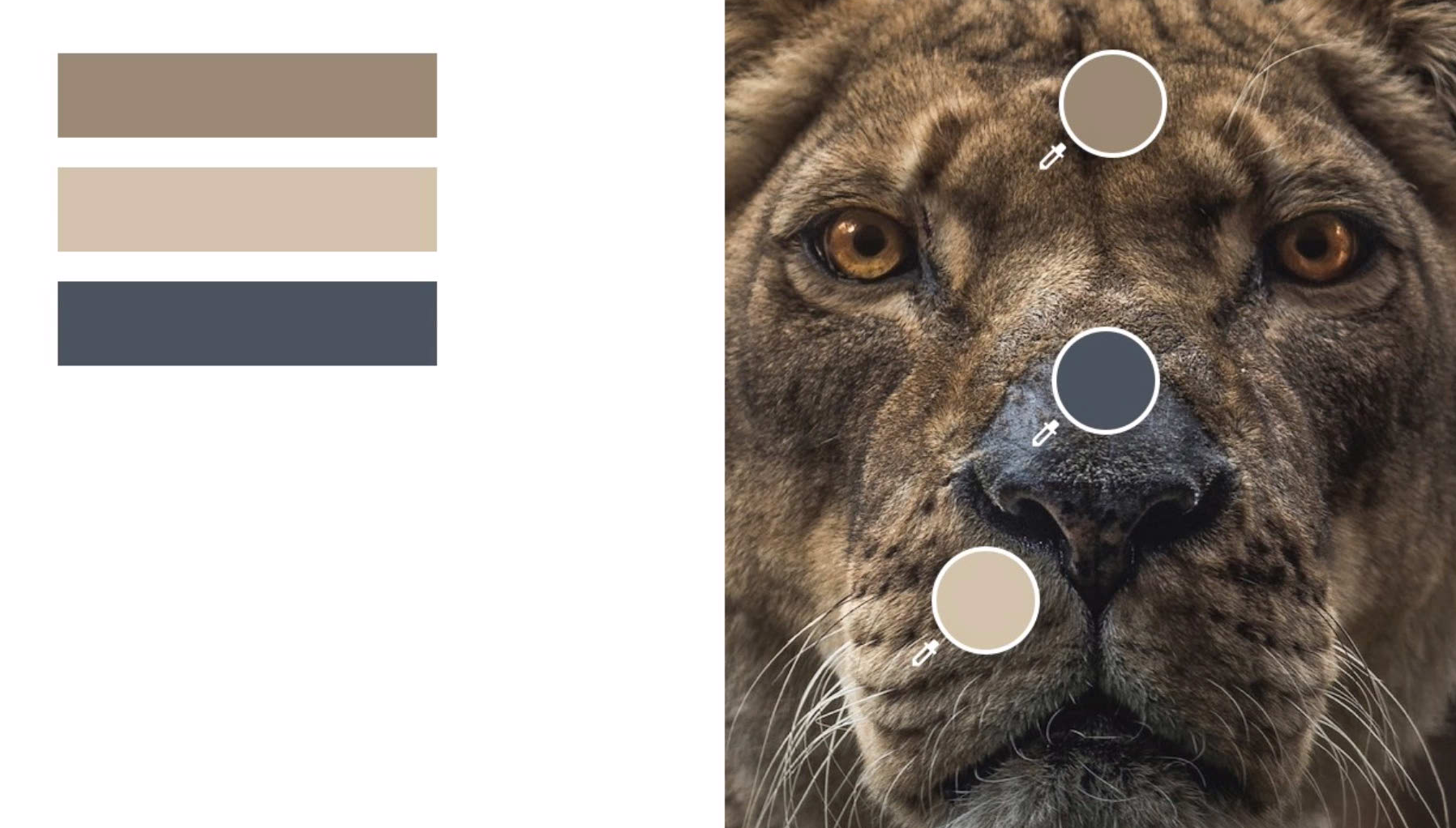 오른편의 사자 사진에서 색을 추출한다면 위와 같이 자연스럽고 조화로운 색상 팔레트를 만들어 낼 수 있습니다.