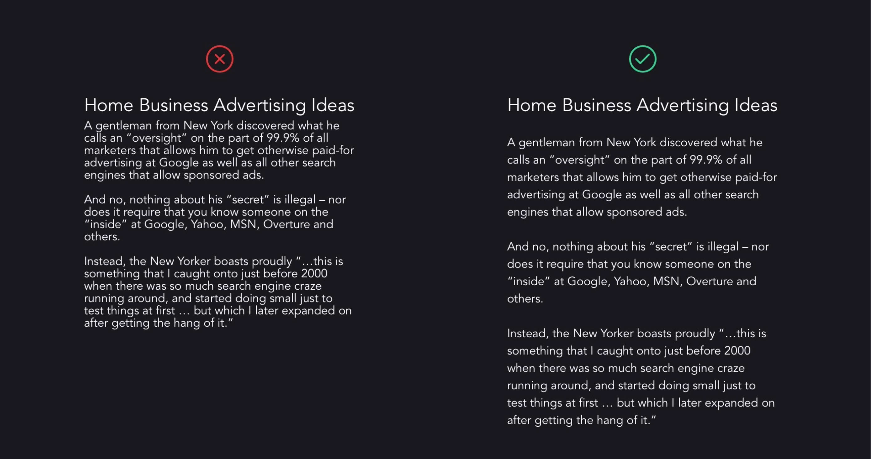 빡빡했던 단락의 글이 여백을 사용함으로써 가독성이 훨씬 증가했습니다.
