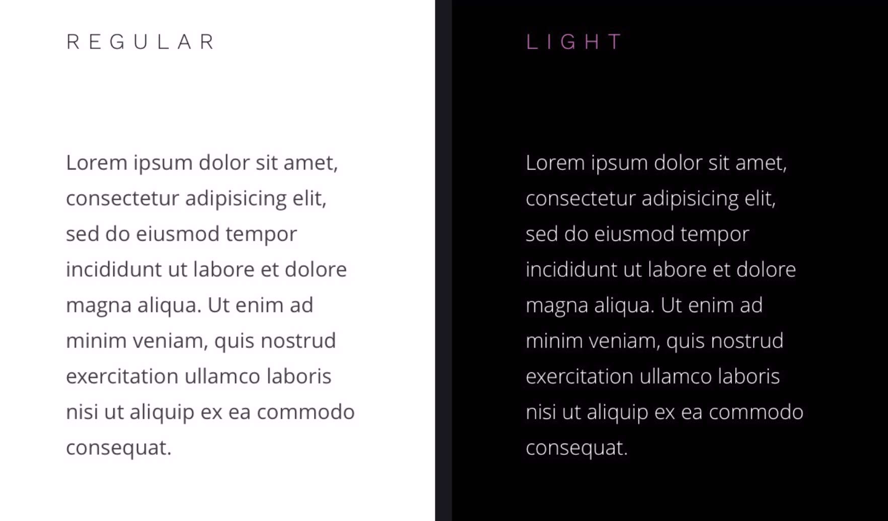 어두운 배경의 텍스트는 분명히 Light 두께이지만 밝은 배경의 텍스트와 비슷해보입니다.